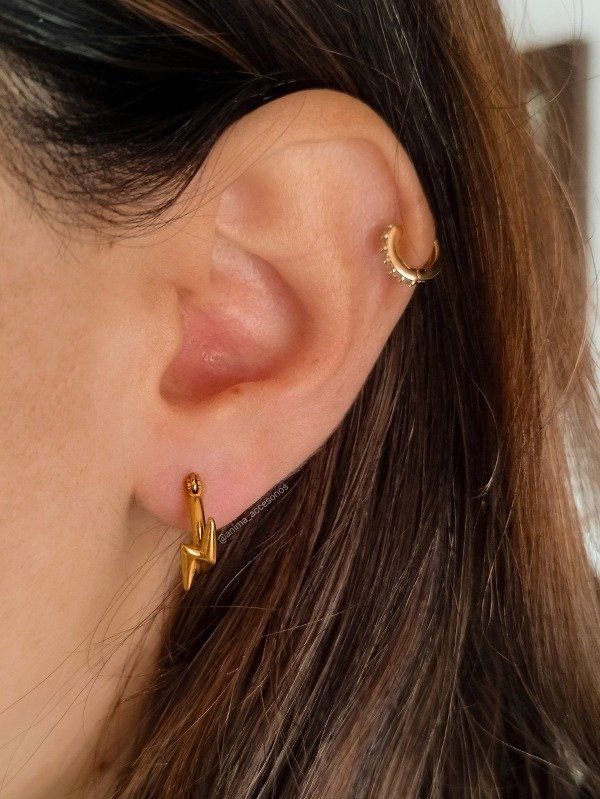 Argollas rayo. Este modelo se puede utilizar en las perforaciones: 1er, 2do lóbulo (ver foto abajo)