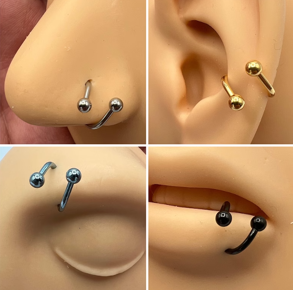 Aro twister clásico. Este tipo de piercing se puede usar en las perforaciones: hélix, boca y ombligo
