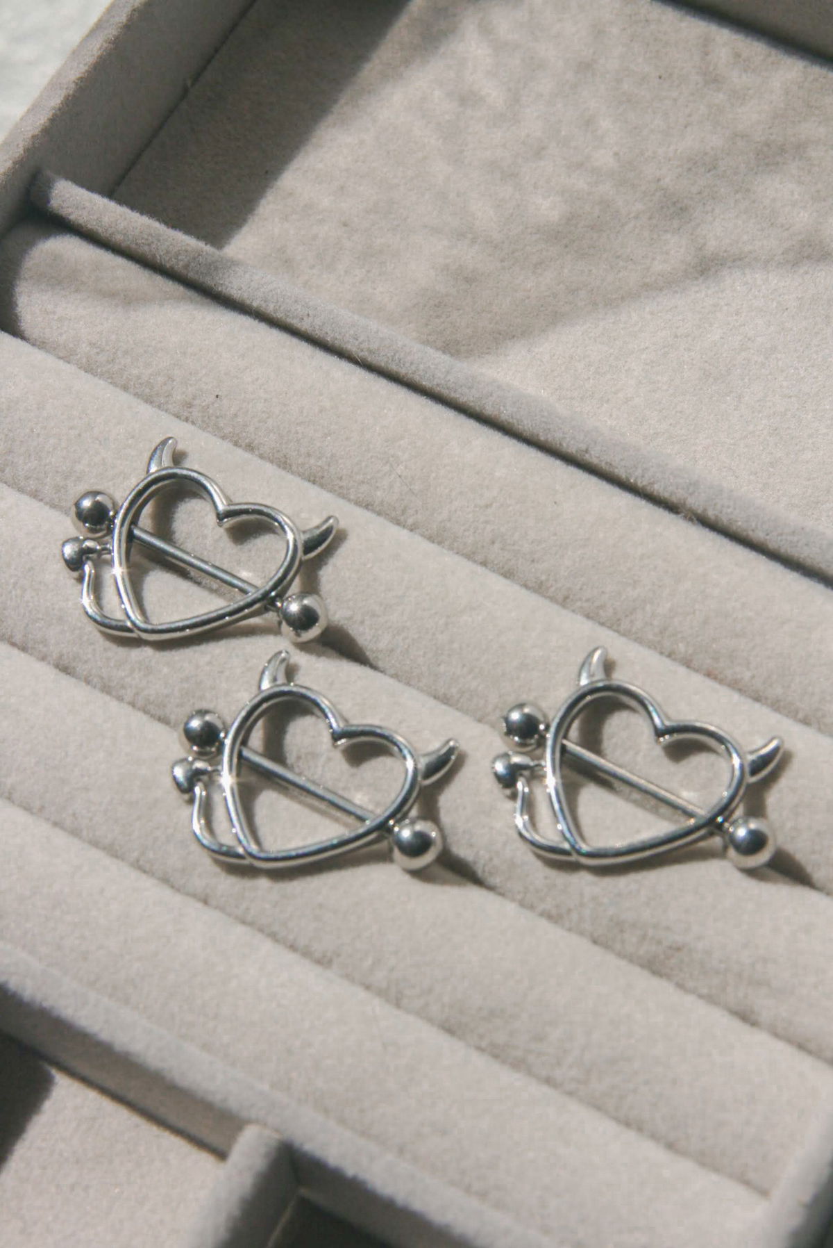 Barbell recto clásico con corazón con cuernitos y cola de diablita. Podes usarlo con o sin el aplique del corazón! Este tipo de piercing se puede usar en la perforación del pezón