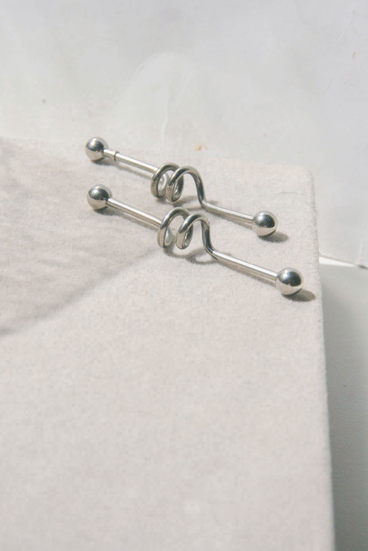 Piercing clásico con espiral en el centro. Este tipo de piercing se puede usar en las perforaciones: indrustrial