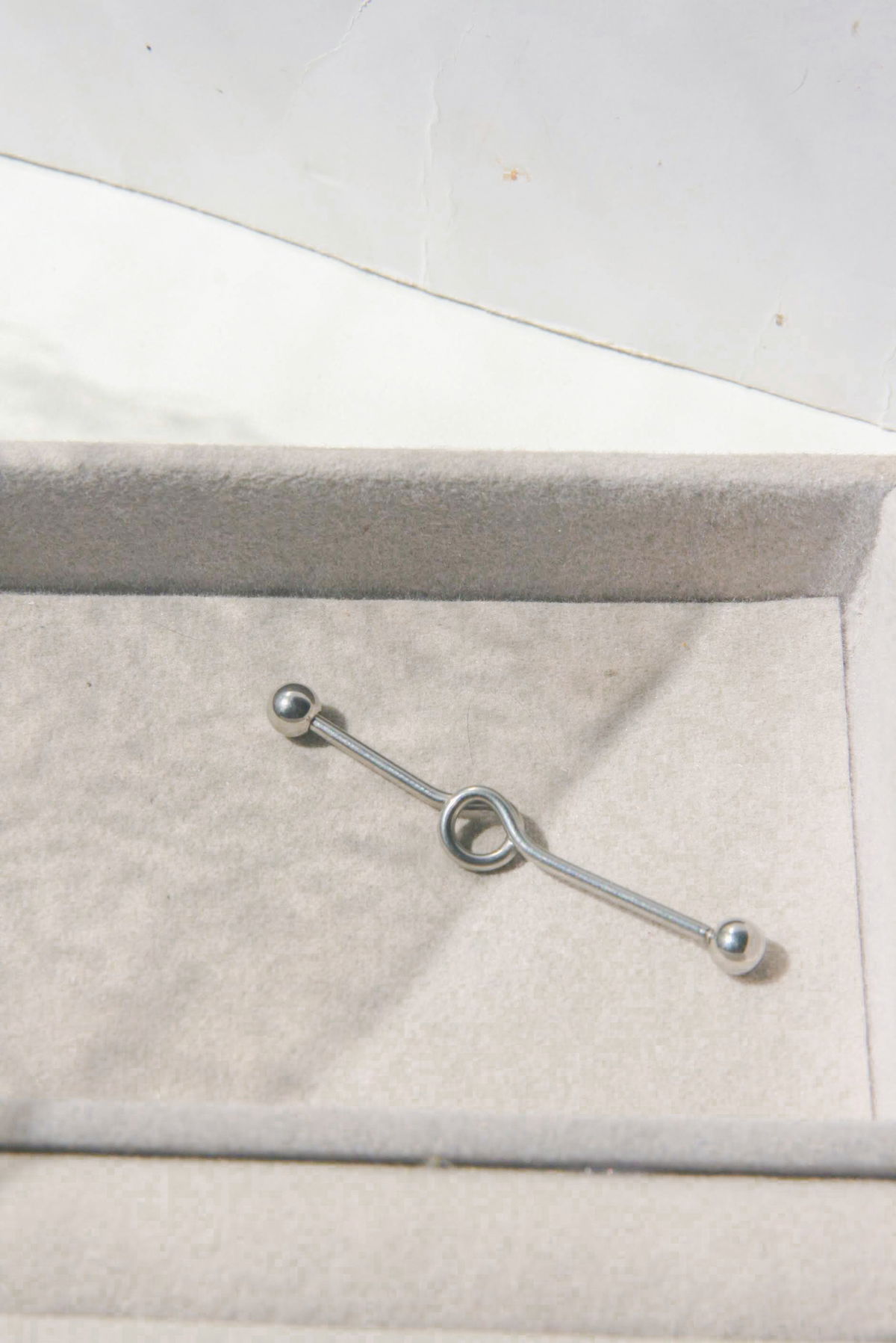 Piercing clásico con círculo en el centro. Este tipo de piercing se puede usar en las perforaciones: indrustrial