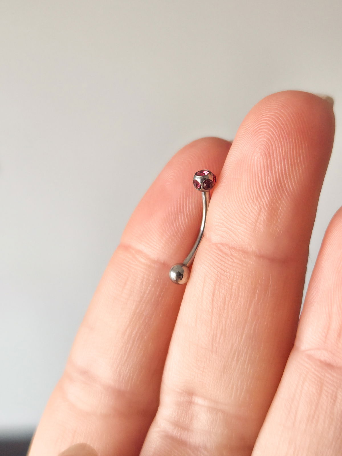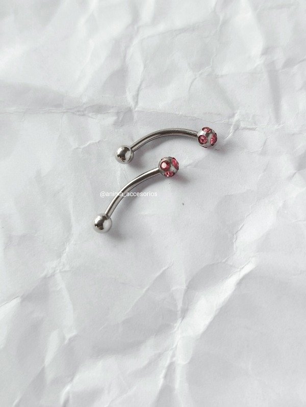 Aro barbell curvo clásico con cubics rosas. Este tipo de piercing se puede usar en las perforaciones: rook, anti tragus, ceja, ashley y ombligo