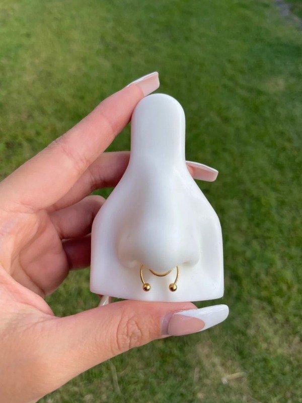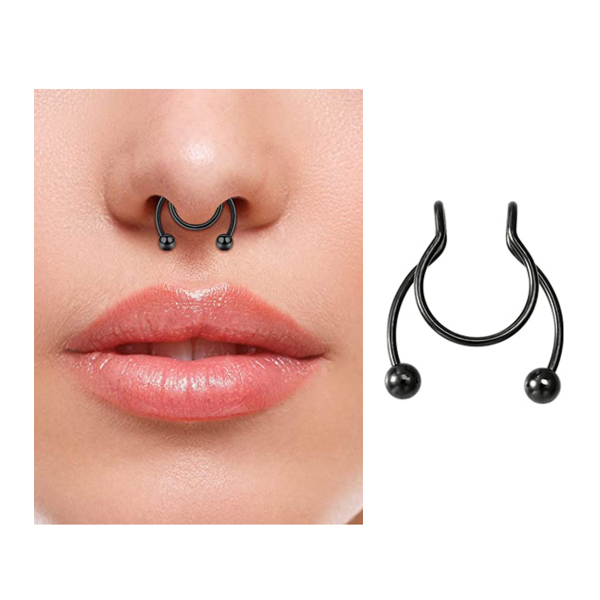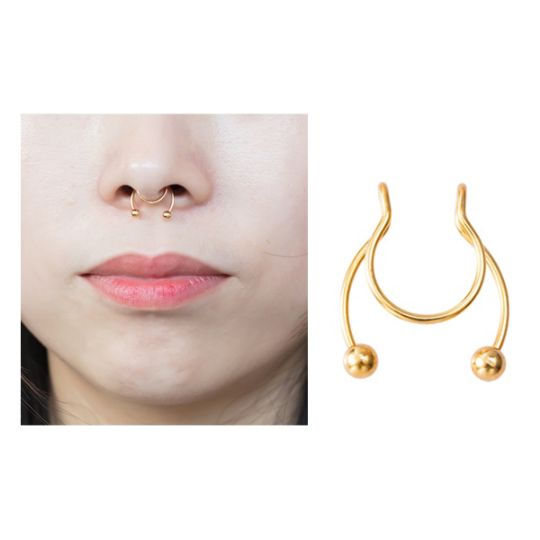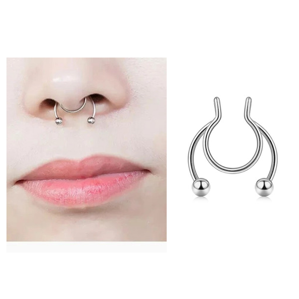 Con este arito a presión podes simular tener el arito de la nariz (septum). No necesitas realizarte la perforación para usarlo, podes ajustarlo a tu gusto. Es perfecto para ver como te queda el estilo si todavía tenes dudas y para las salidas ✨