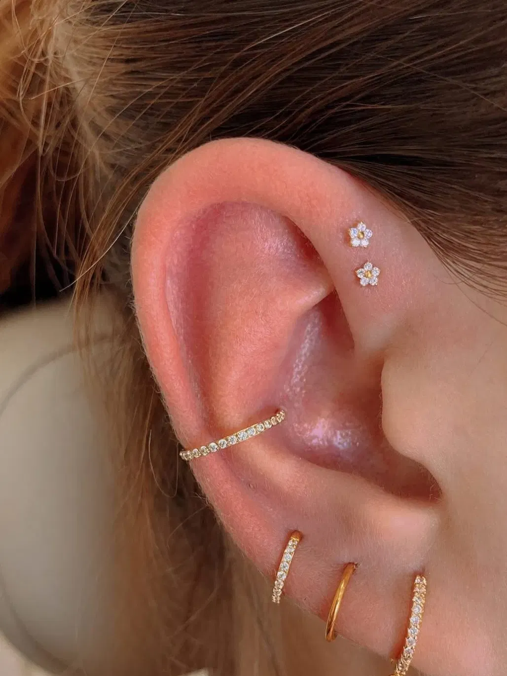 Tipo de cierre: Segmentada. Este tipo de aros tienen una bisagra que al cerrar quedan como argollitas sin fin. Es uno de los cierres más cómodos y seguros de llevar!