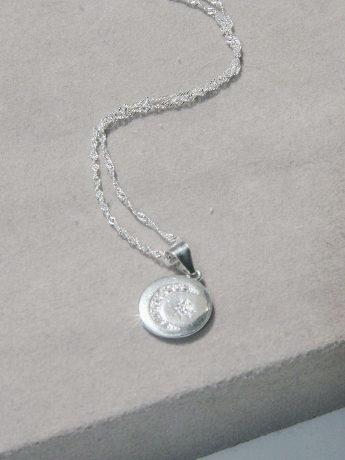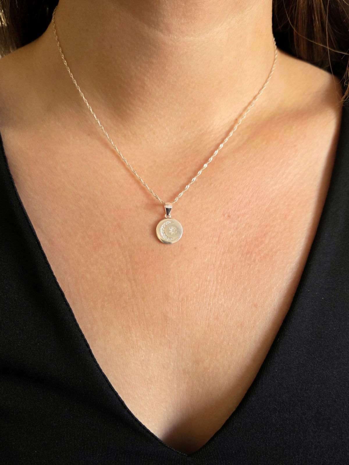 El collar Moonlight hecho de Plata 925 con medalla colgando es fino y elegante. Un colgante ideal para llevar día a día y triunfar en todos los looks. ✨