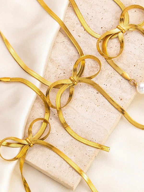 El collar coquette está diseñado con nuestra cadena snake con una terminación en moño que lo hace de lo mas hermoso!