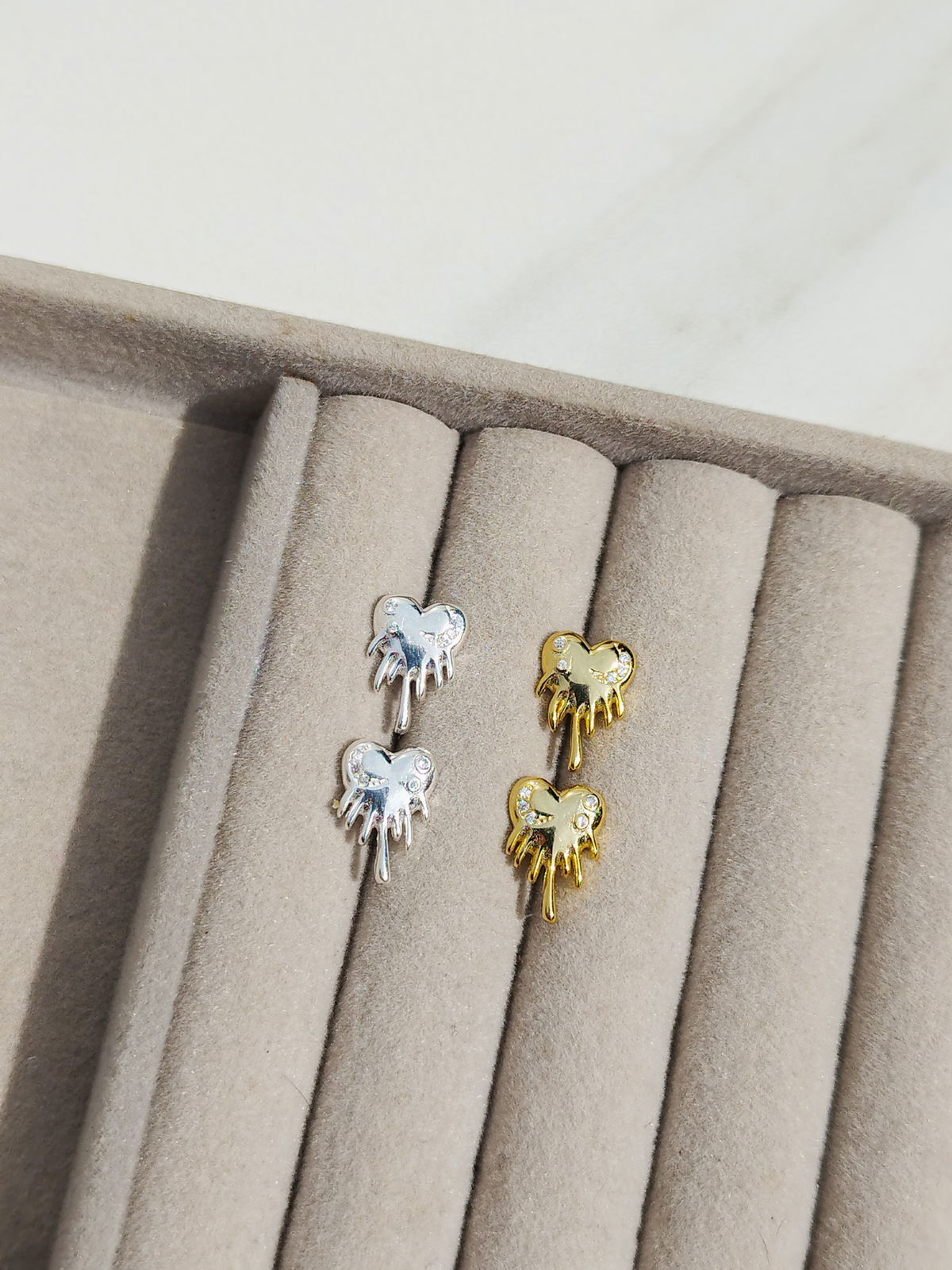 Los Coti están diseñados con forma de corazón derretido con cubics incrustados. Este modelo se puede utilizar en las perforaciones: 1er, 2do, 3er y 4to lóbulo (ver foto abajo)