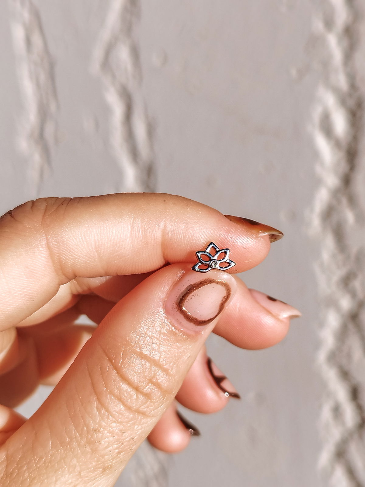 Piercing labret Loto con cubic blanco. Este tipo de piercing se puede usar en la perforación: lóbulo, hélix, contra hélix, flat, tragus, anti tragus, conch, boca.
