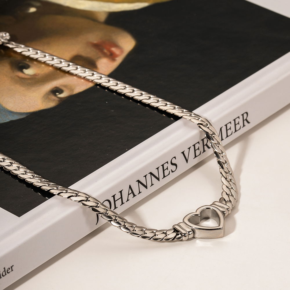 El Collar Corazón Corazón es perfecto para las amantes de las joyas de corazones. Una cadena ancha con eslabones grandes y un corazón calado en el centro con estilo chunky que destaca que es la última tendencia