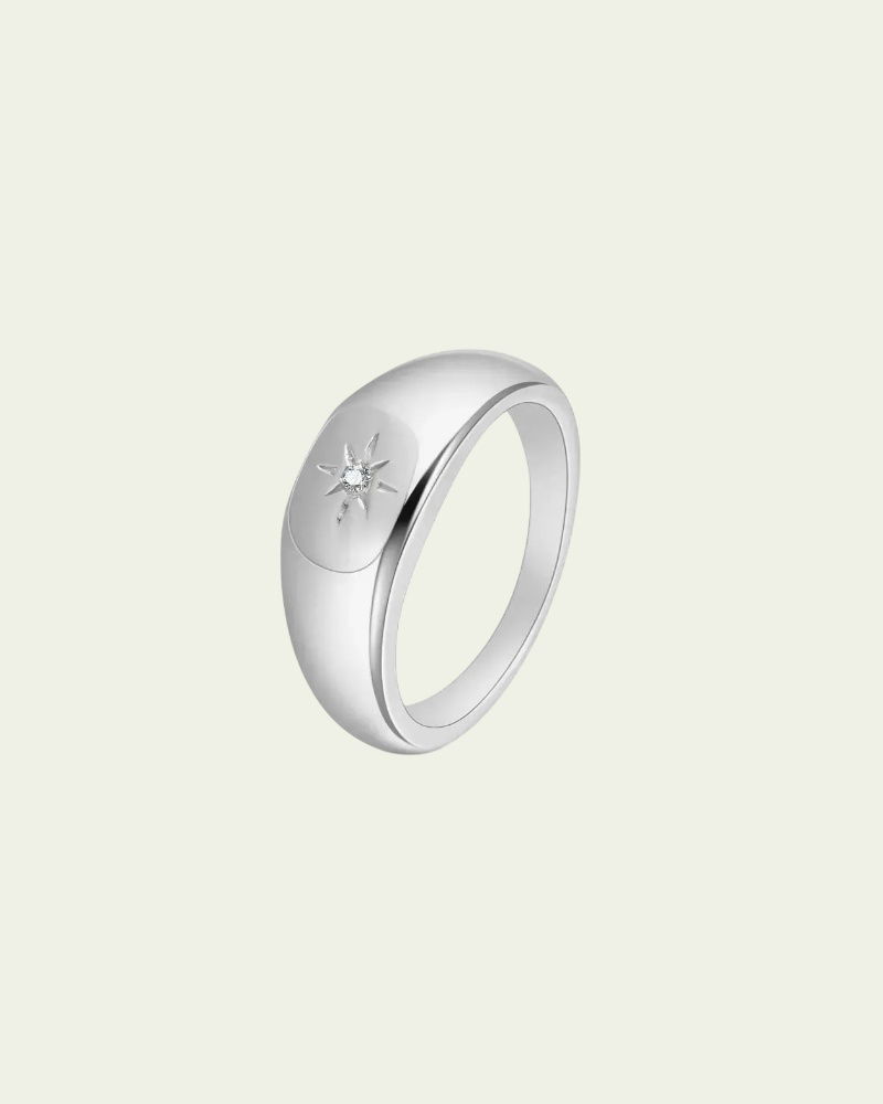 Anillo rígido estilo sello con estrella grabada y cubic blanco