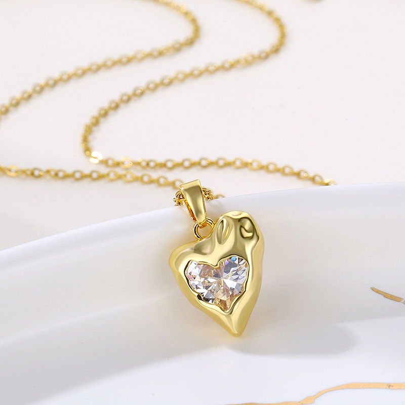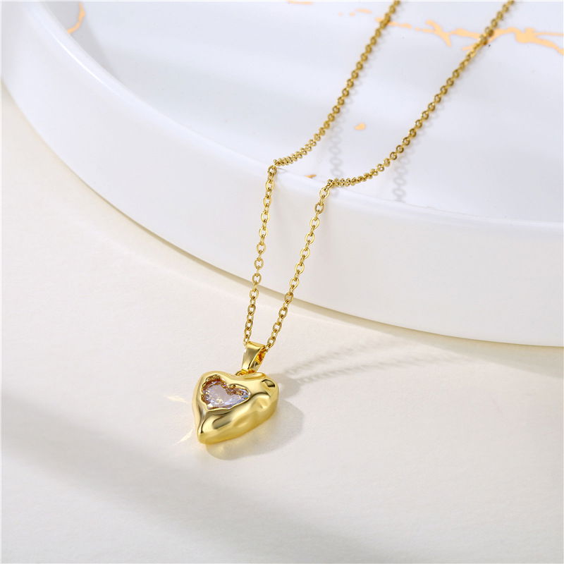 Conjunto de cadena fina con dije de corazón estilo chunky con cubic blanco🤎