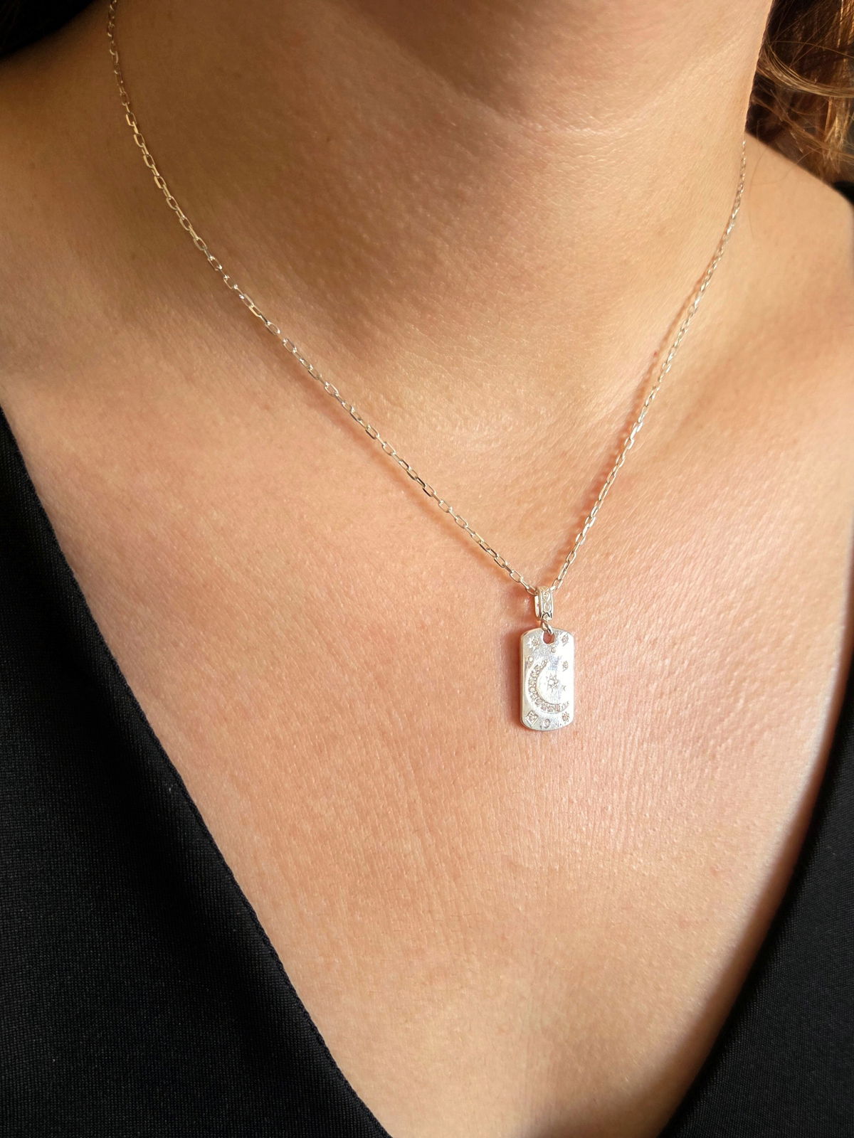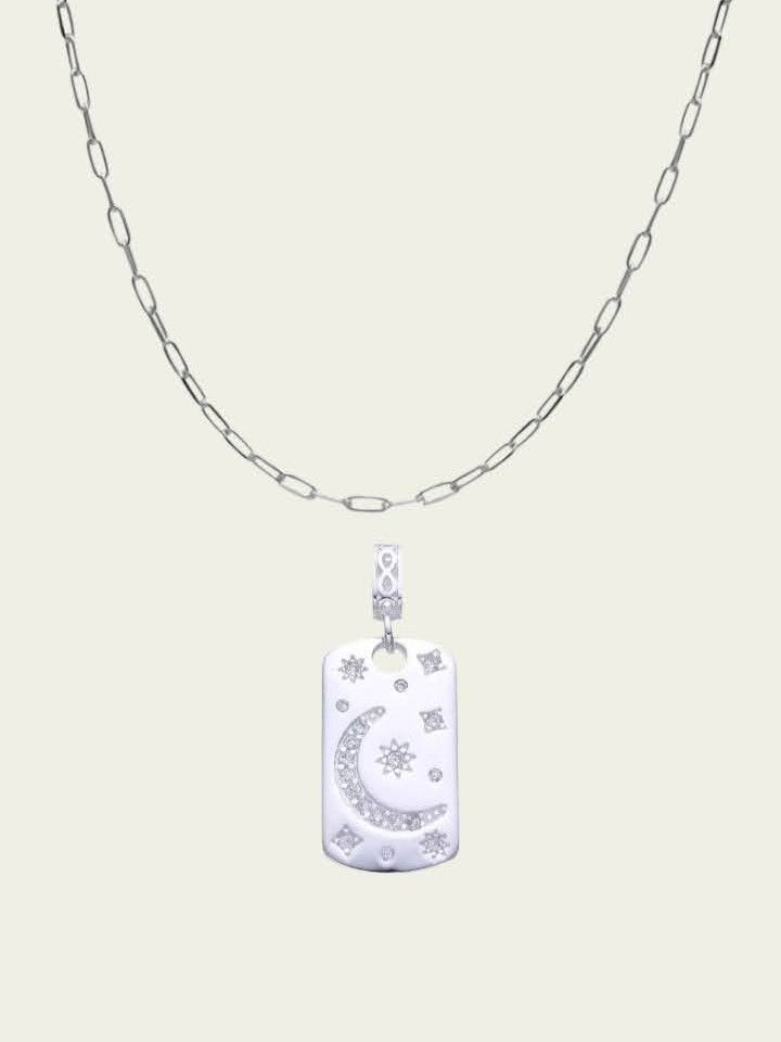 Cadena finita y dije medalla con Luna y destellos con circonitas blancas