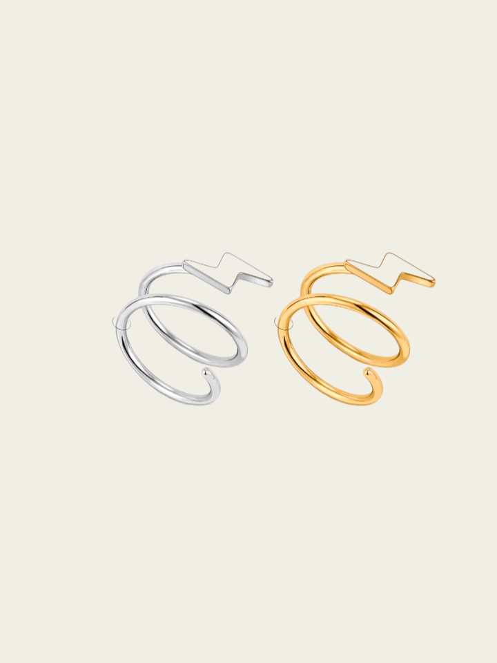 Argolla sin fin doble rayo. Simula que tenes dos aros y solo necesitas una perfo para usarlo. Este tipo de piercing se puede usar en las perforaciones: Nostril (nariz), 1er y 2do lóbulo, boca, hélix