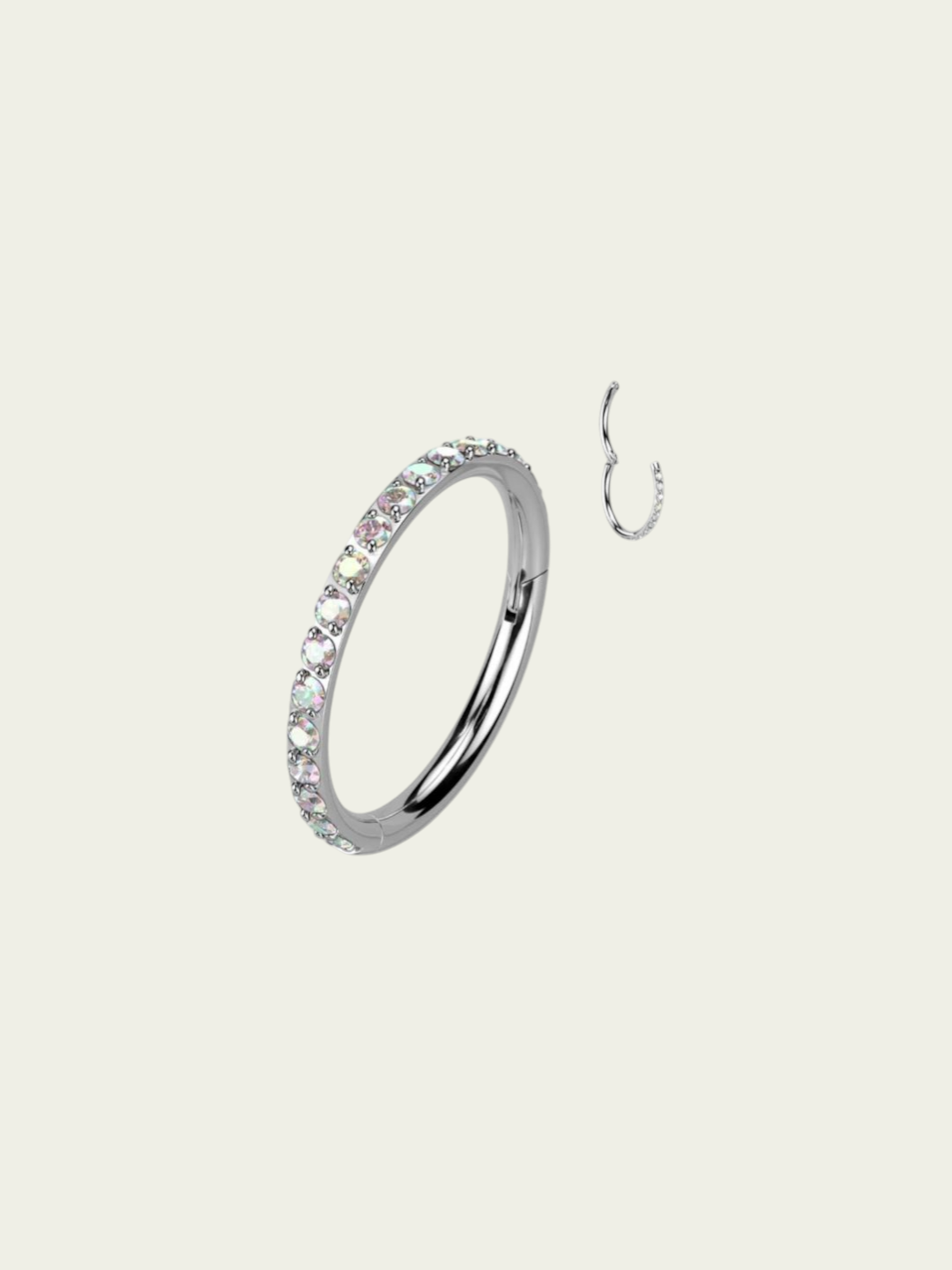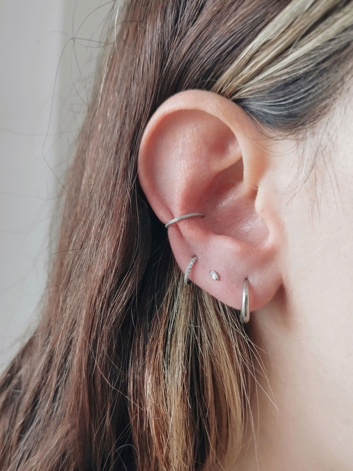 Tipo de cierre: Segmentada. Este tipo de aros tienen una bisagra que al cerrar quedan como argollitas sin fin. Es uno de los cierres más cómodos y seguros de llevar!