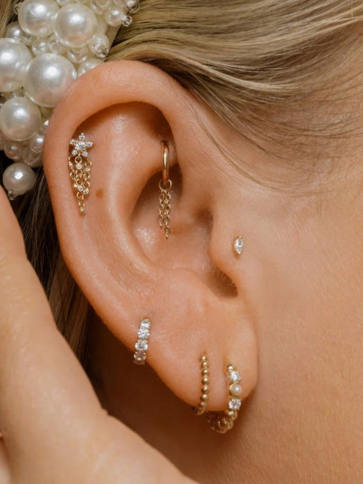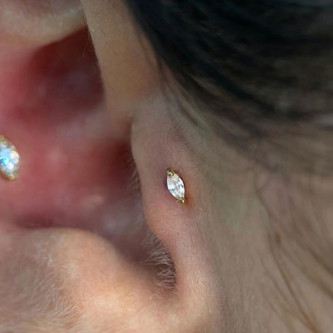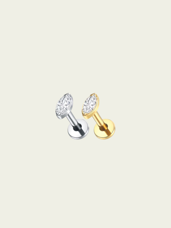 Piercing labret mini ovalado cubic. Este tipo de piercing se puede usar en las perforaciones: flat, hélix, contra hélix, conch, lóbulo y tragus