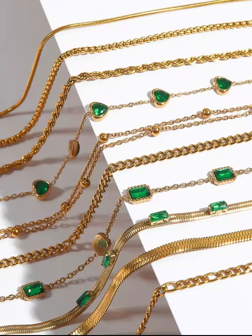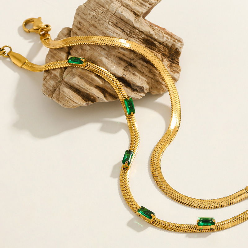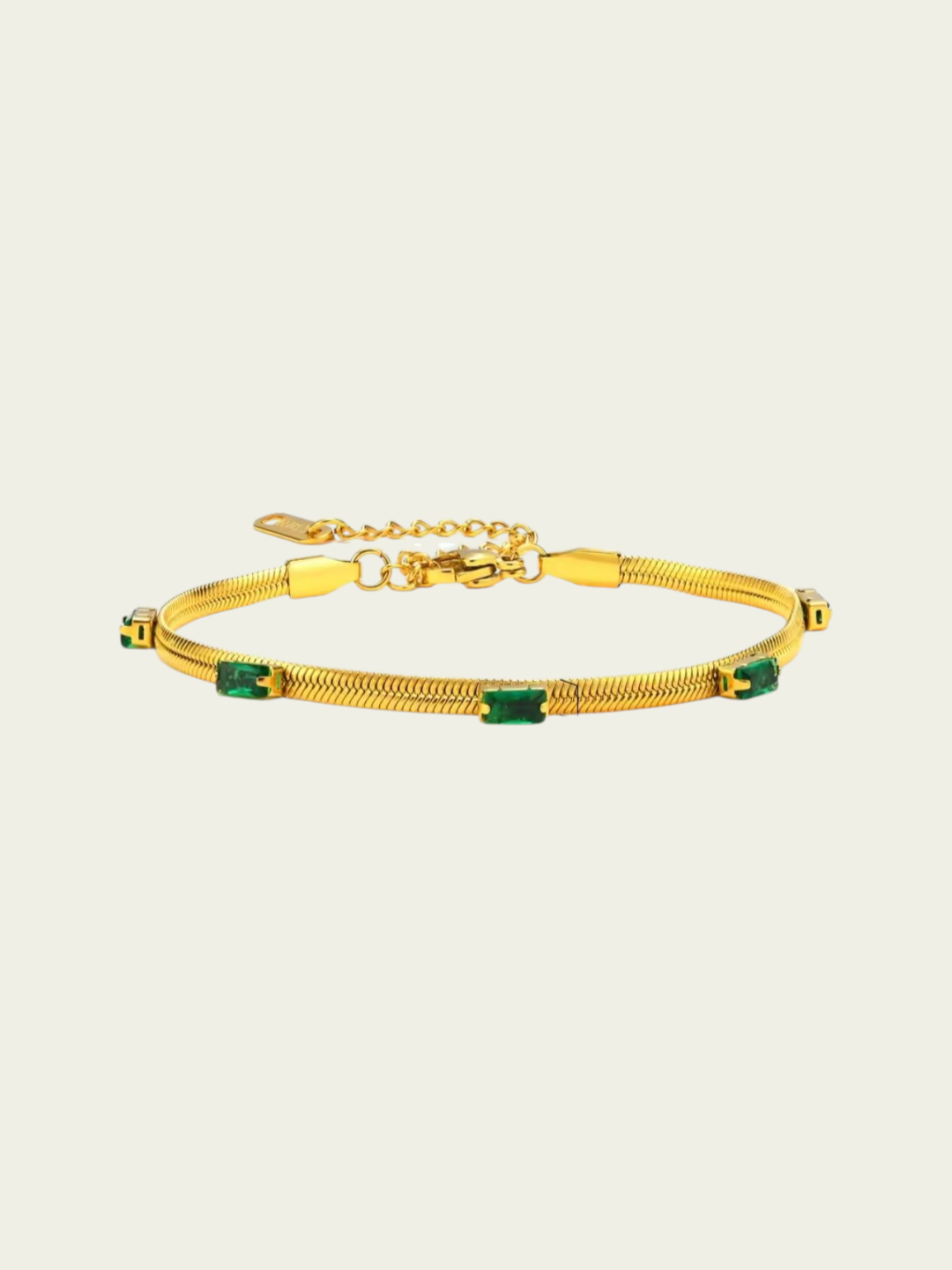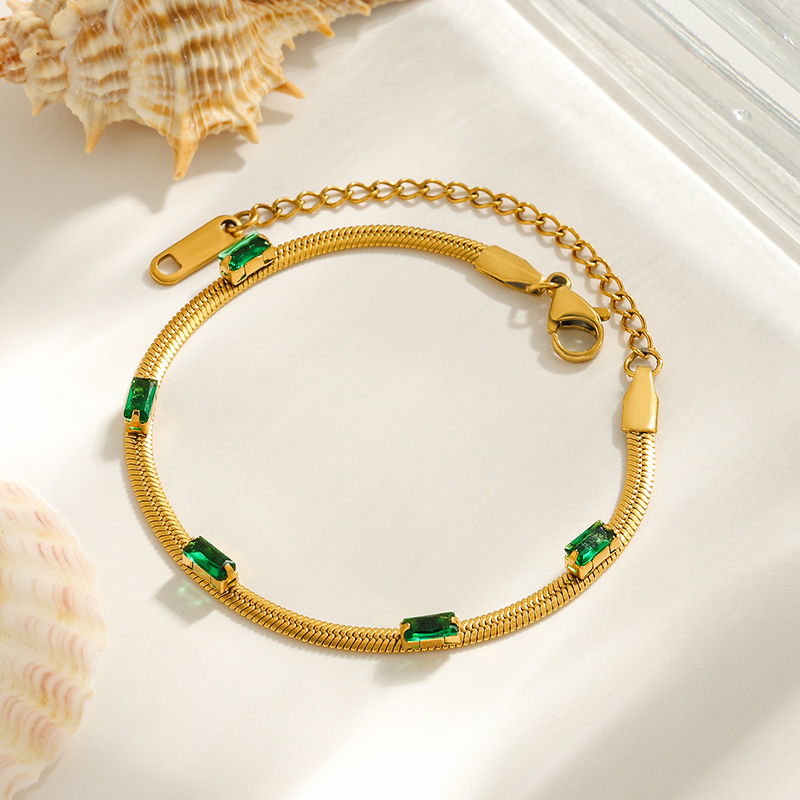 La pulsera emerald está diseñada con la pulsera clapton y mini cubics cuadrados en color verde