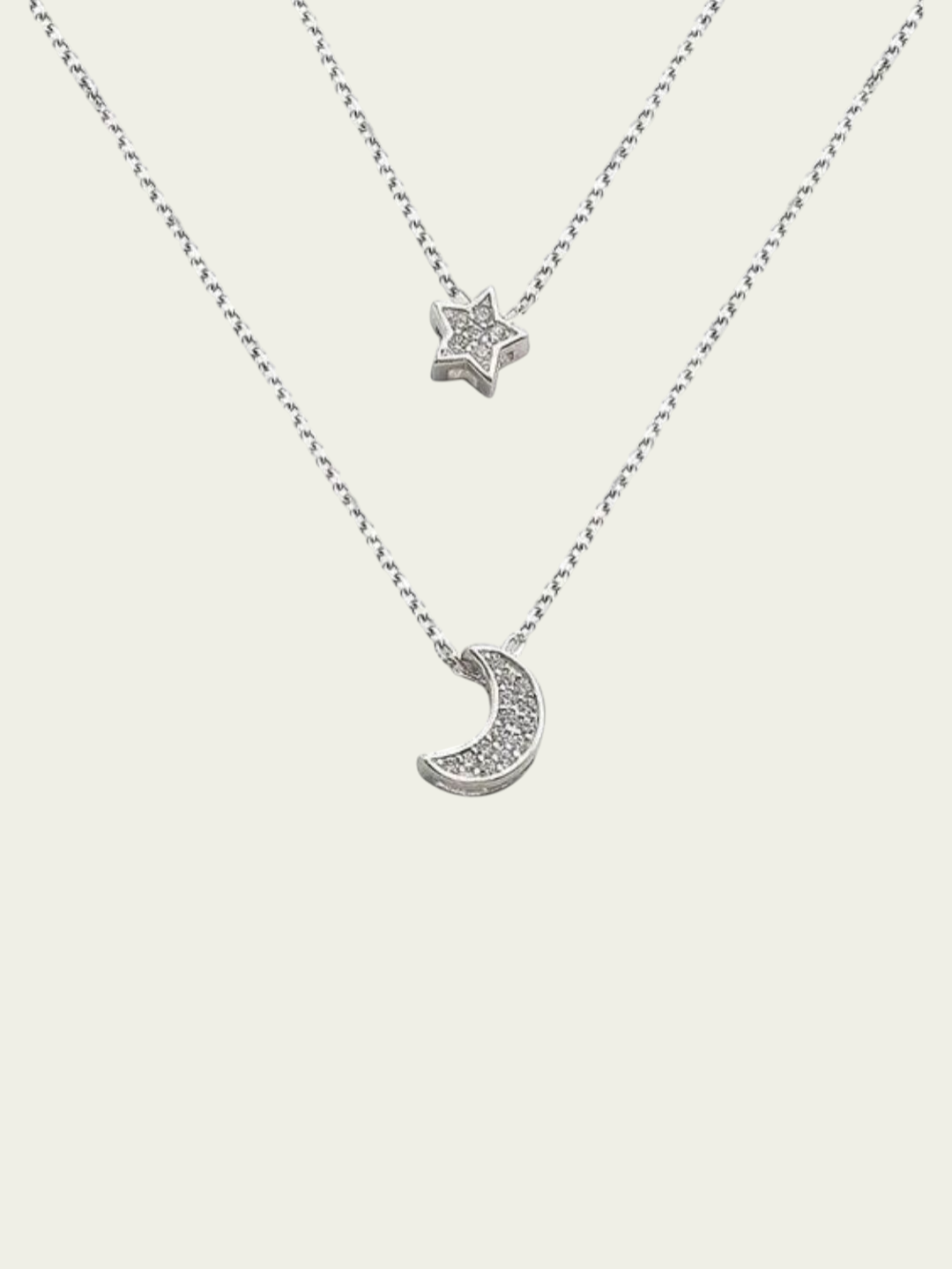 Olvídate de las combinaciones imposibles con el Collar cosmos va a ser super facil! Al estar formado por 2 Collares de diferentes alturas con dije luna y estrella, no necesitas más. Es el 2 en 1 que estabas esperando 🙌