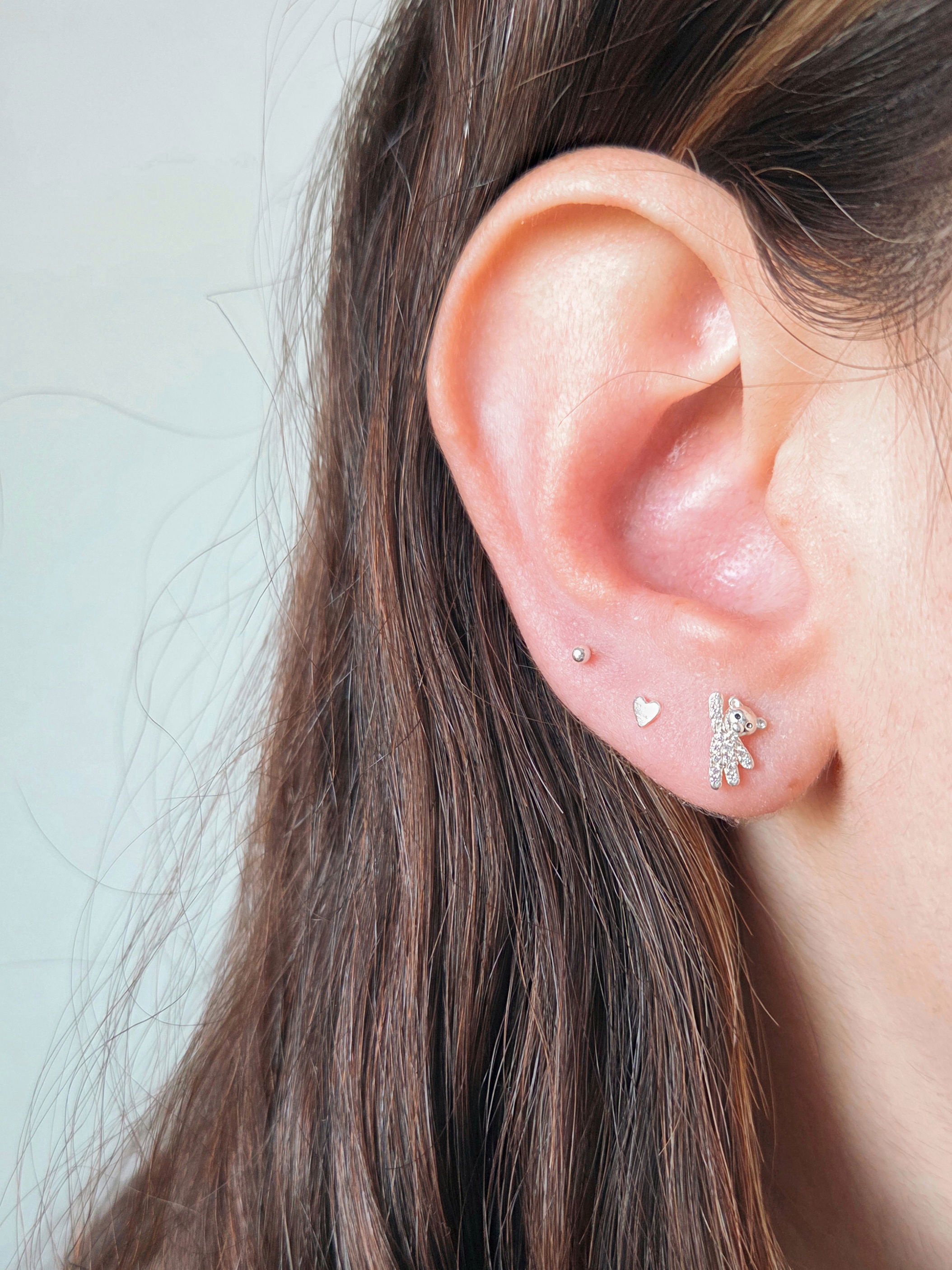 Aros mini corazón, quedan hermosos combinados con otros modelos de pasantes de plata. Este modelo se puede utilizar en las perforaciones: 1er, 2do, 3er y 4to lóbulo, hélix (ver foto abajo)