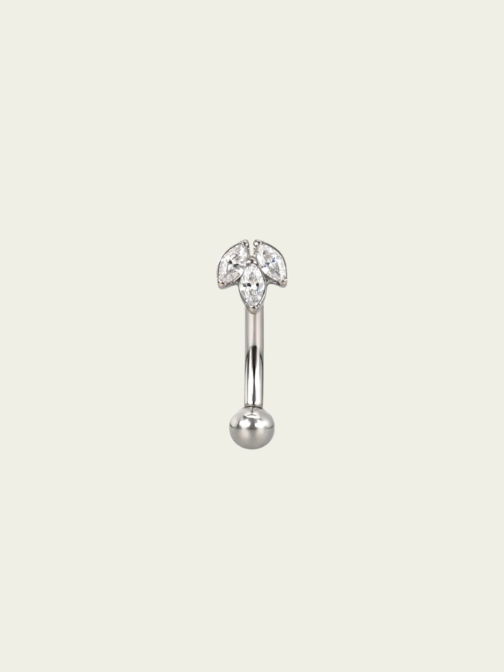 Piercing tres cubics con piedra amatista. Este piercing se puede usar en las perforaciones: rook, labio, ceja, ombligo, anti tragus (ver foto abajo)