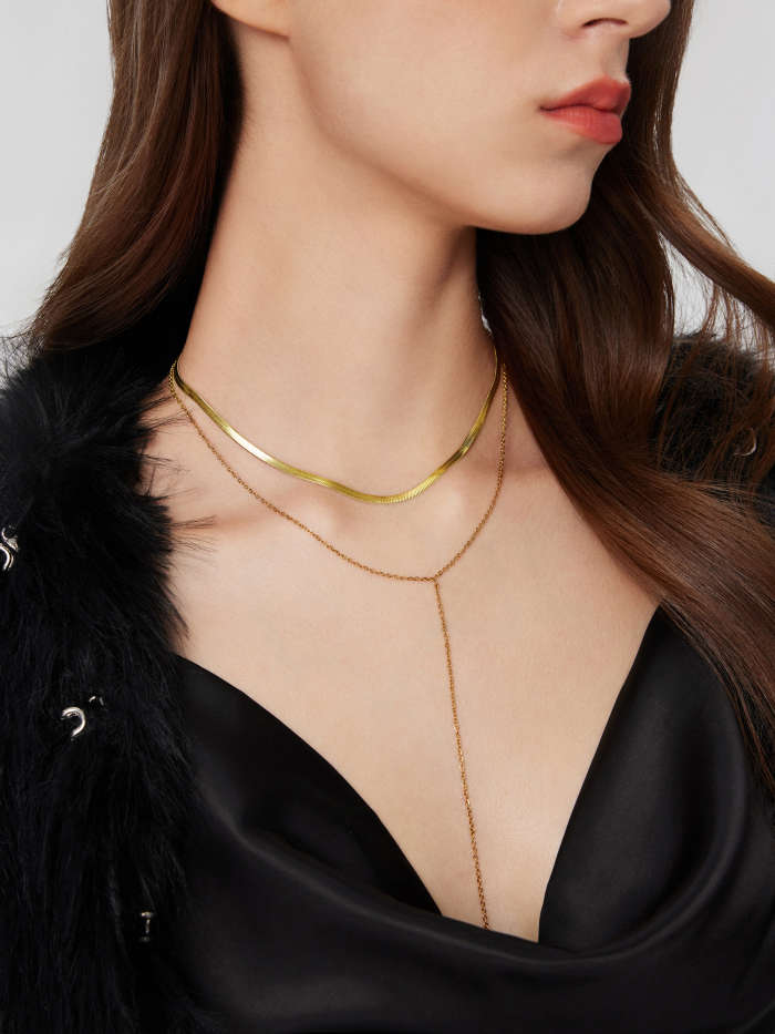 Olvídate de las combinaciones imposibles con el Collar doble Sophia va a ser super facil! Al estar formado por 2 Collares de diferentes alturas, no necesitas más. Es el 2 en 1 que estabas esperando 🙌