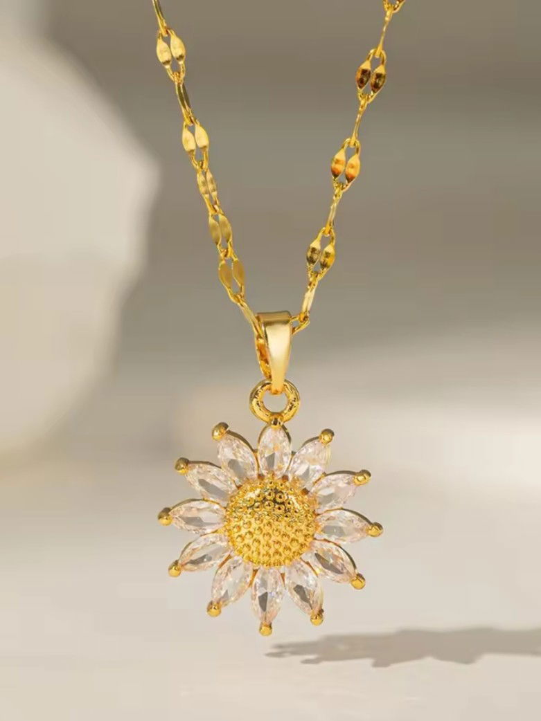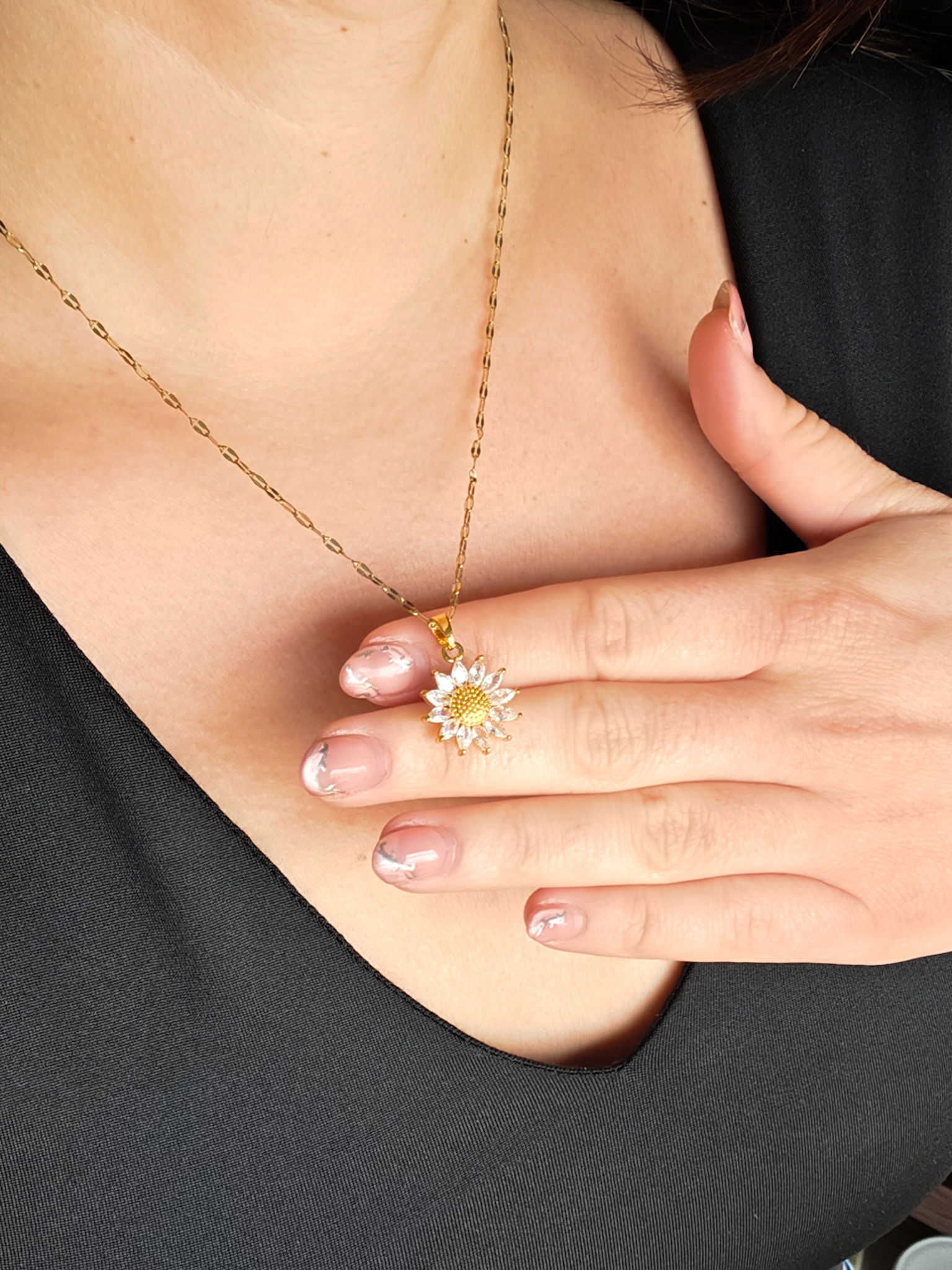 El collar Margarita está diseñado con cadena fina eslabones planos con dije margarita cubics blancos