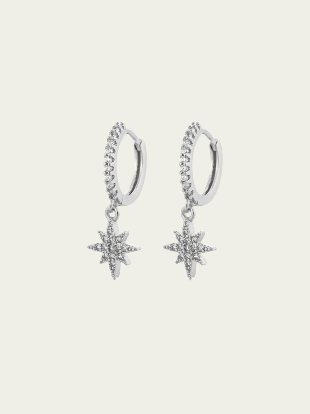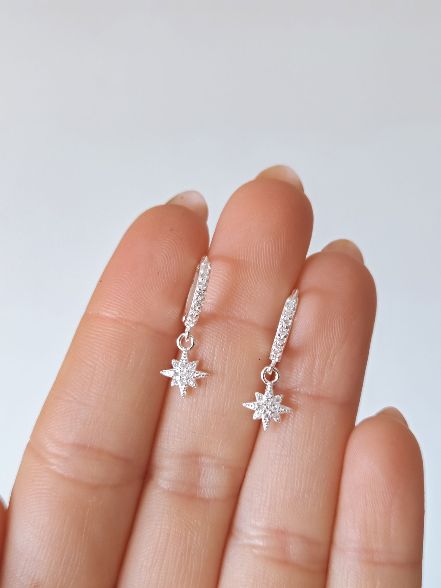 Las argollas estrellas son argollas estilo huggie con circonias blancas engarzadas, tienen un charm colgante con forma de estrella! π Este modelo se puede utilizar en las perforaciones: 1er, 2do y 3er lΓ³bulo (ver foto abajo)