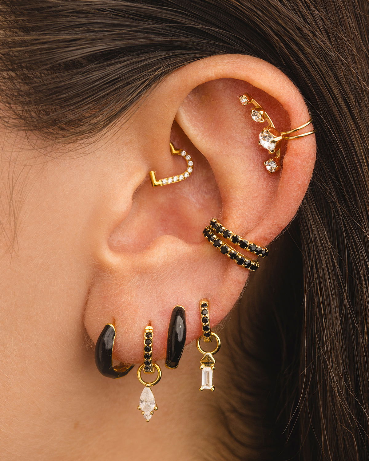 Tipo de cierre: Segmentada. Este tipo de aros tienen una bisagra que al cerrar quedan como argollitas sin fin. Es uno de los cierres más cómodos y seguros de llevar!