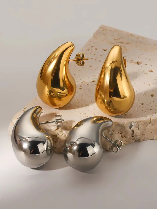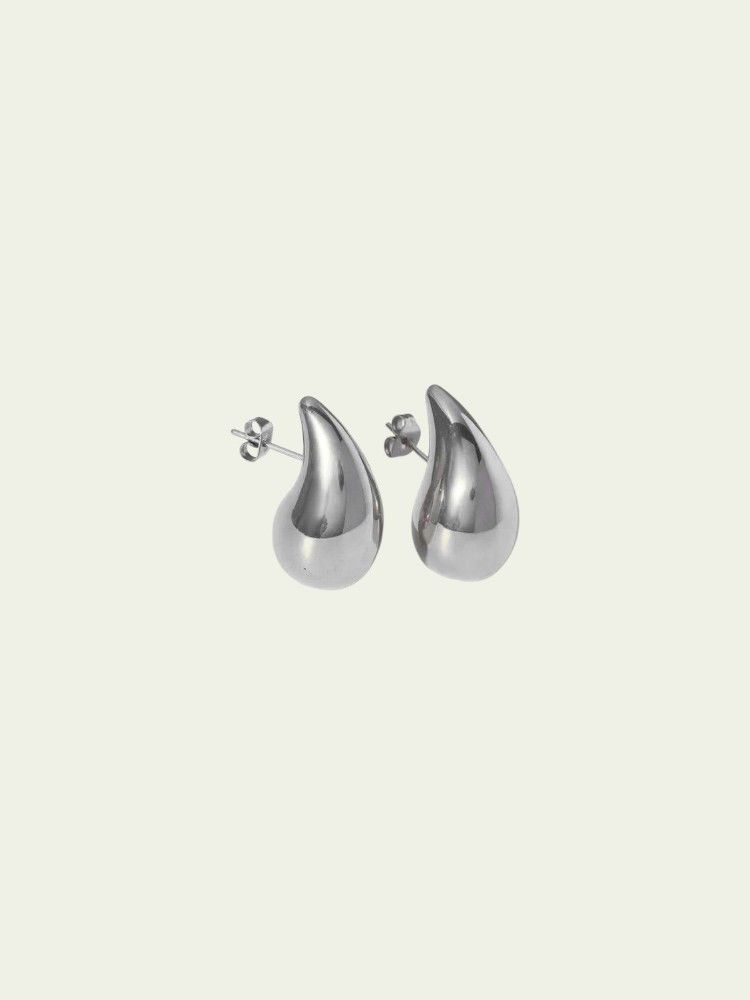 Aros pasantes con forma de gotita inflada. Podes combinarlos con aros similares de distintos tamaños, como los aros Nina.