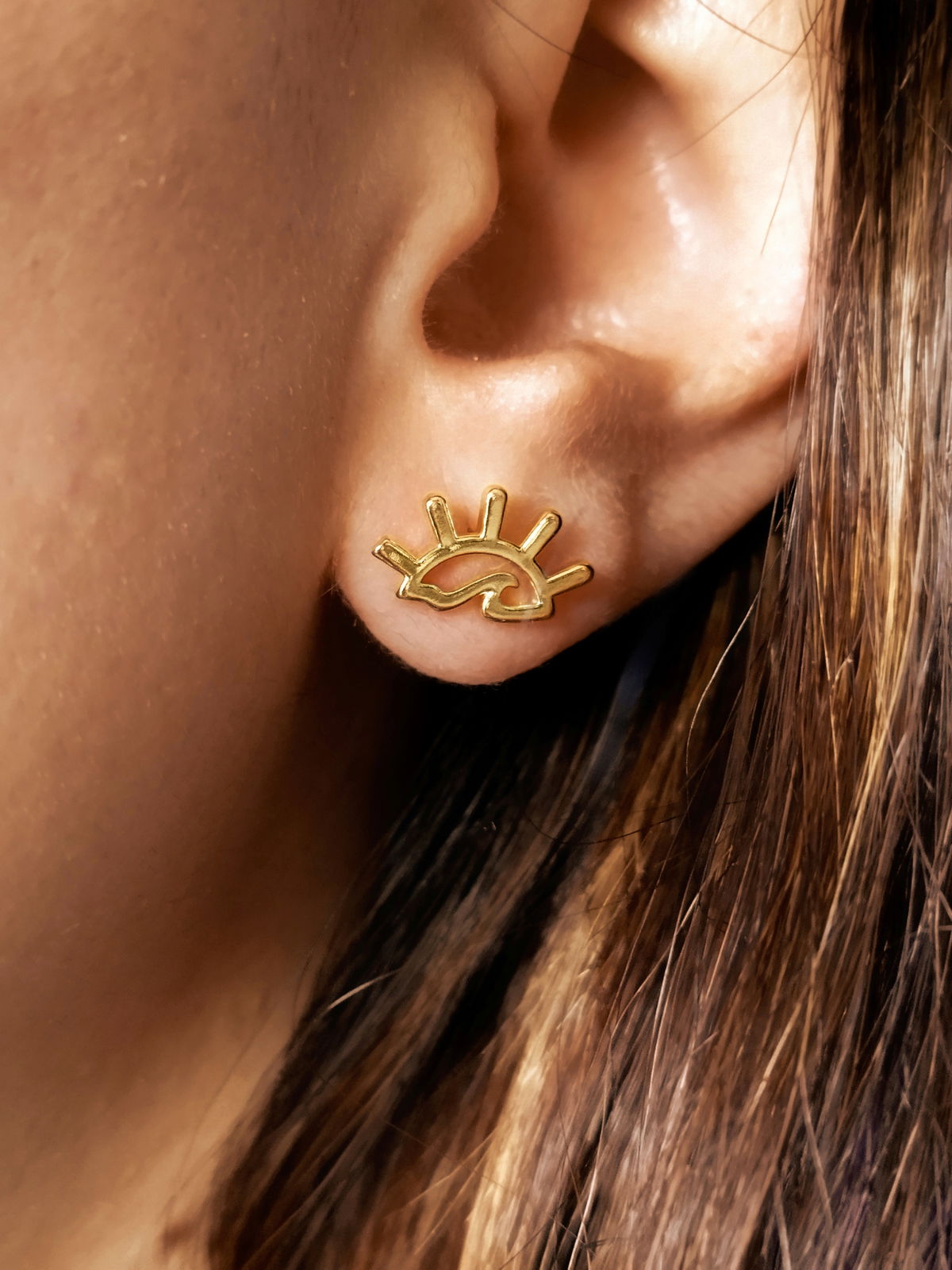 Aros pasantes con forma de ola y sol. Representa el atardecer. Ideal si sos fan de la playa y los atardeceres π