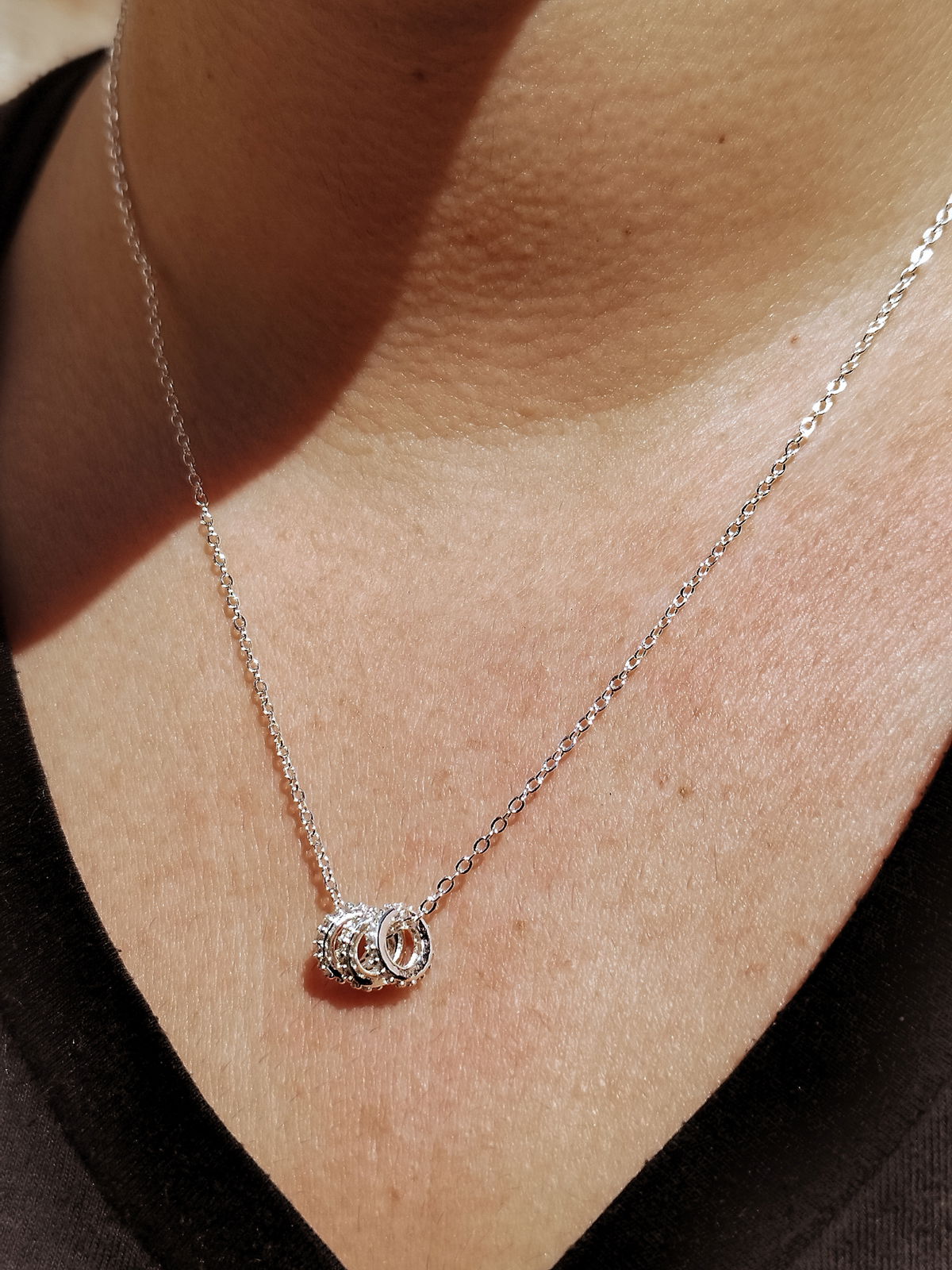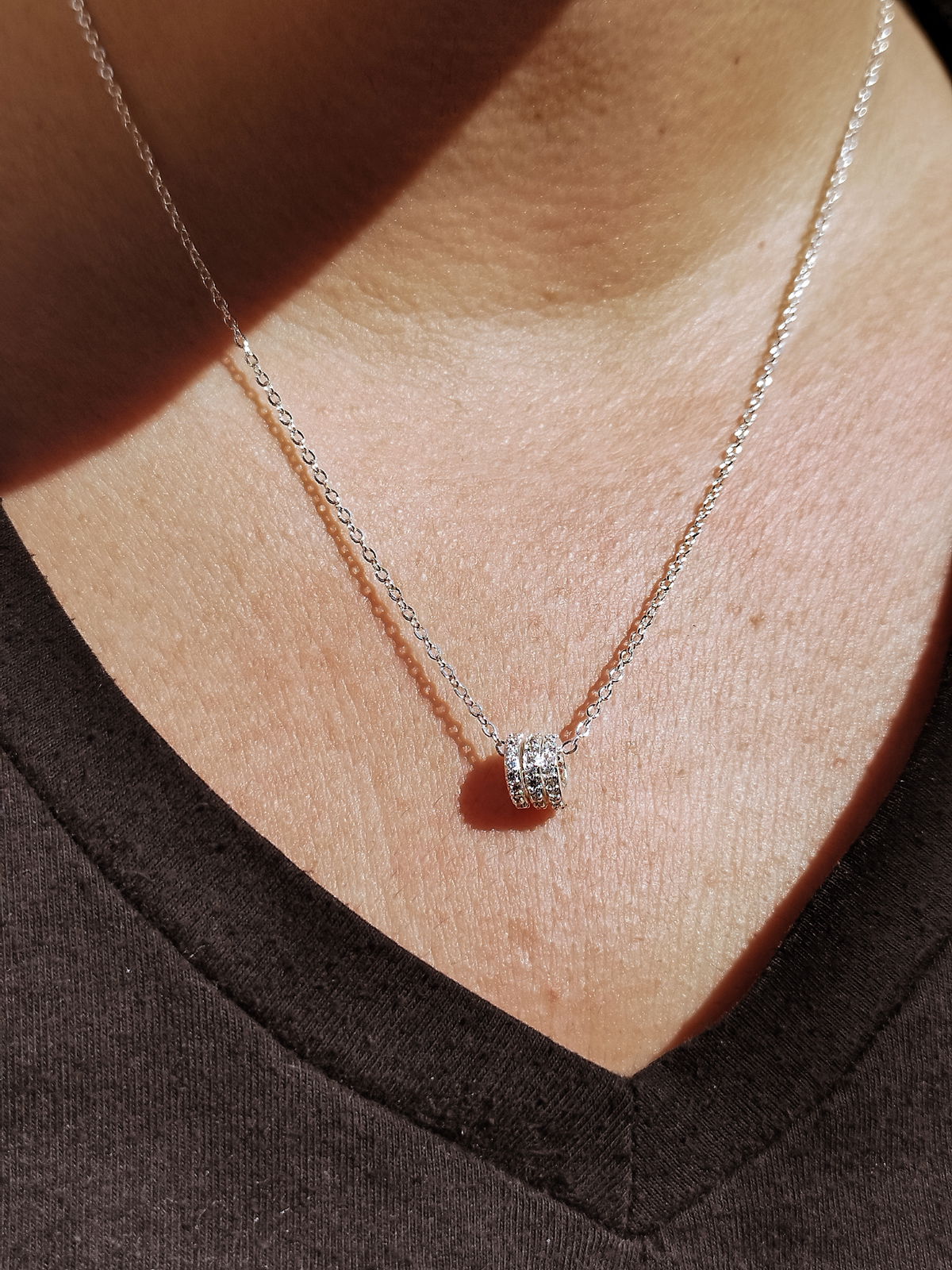 El collar ring, diseñado con una cadena fina regulable, es ideal para regalar a esa persona especial. Diseñado con tres donas pasantes con circonitas blancas