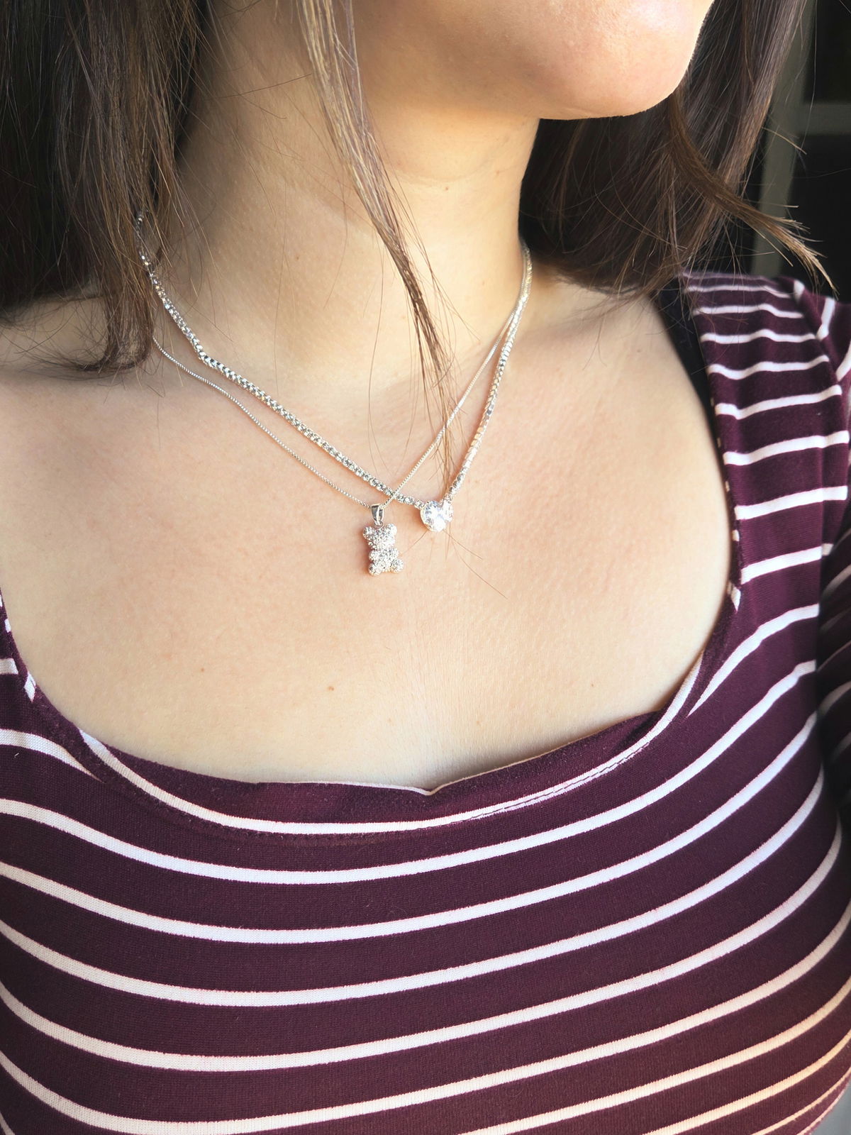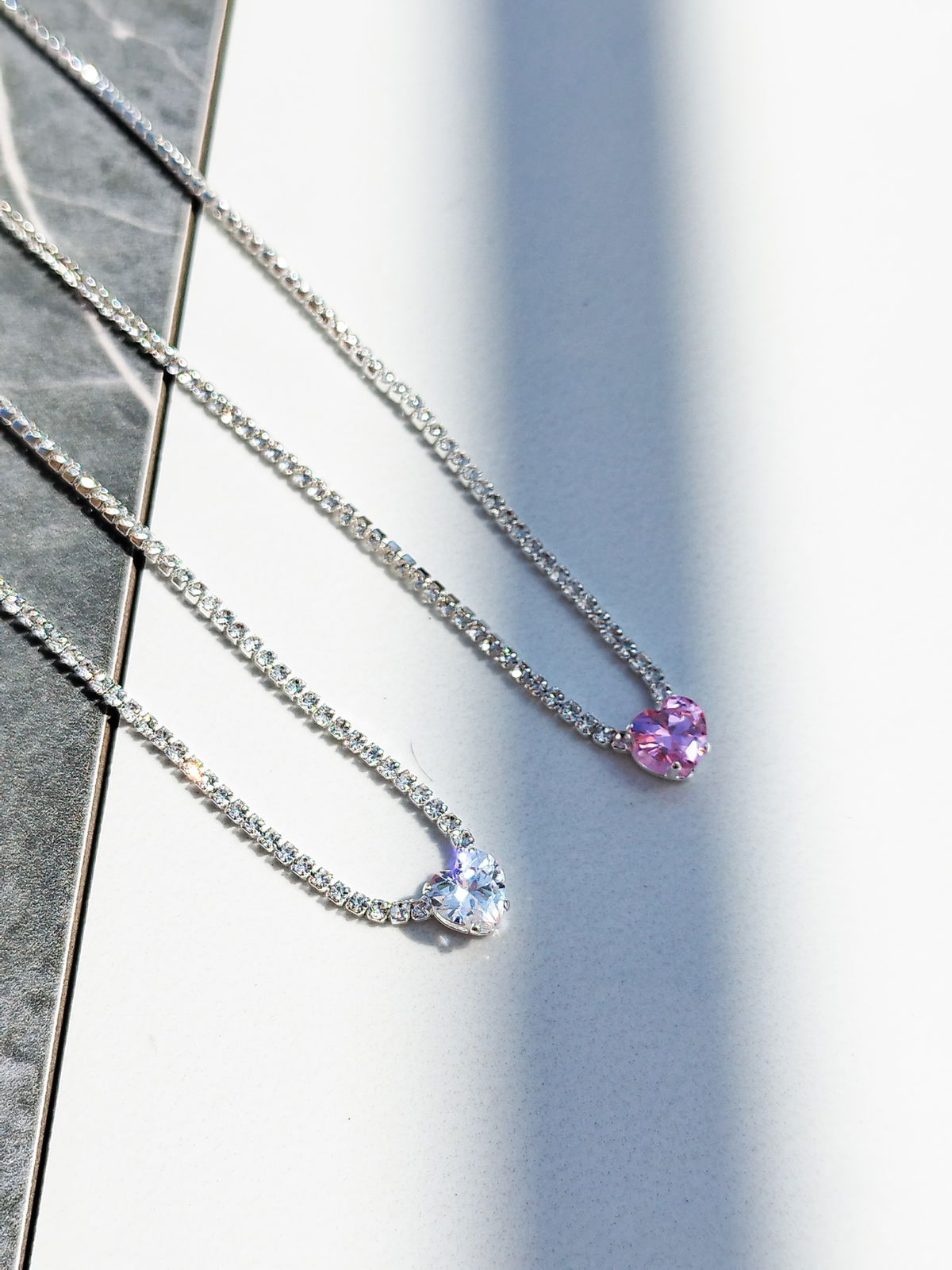 Uno de nuestros collares favoritos, el collar Witney! Diseñado con cadena de circonitas blancas engarzadas y un charm de corazón en cubic blanco o rosa, ideal para regalar a esa persona especial!