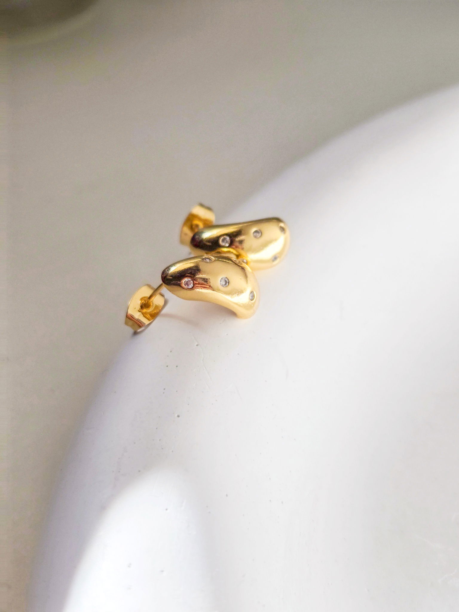 Aro pasante con forma de semi gota con circonitas blancas. Este modelo es ideal para primera perforación y quedan preciosos combinados con aros con cubic blanco