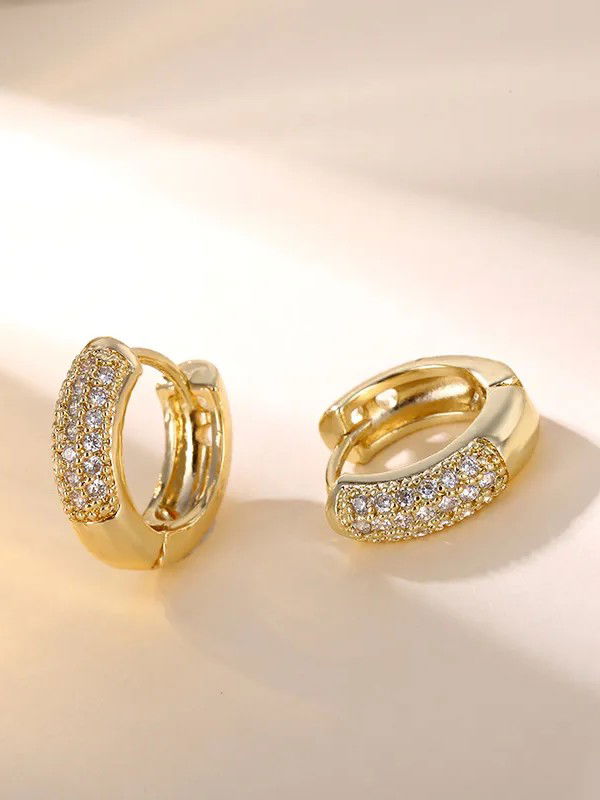 Argollas estilo huggie con circonitas blancas. Se pueden usar del lado con brillo o del lado liso. Este modelo se puede utilizar en las perforaciones: 1er, 2do y 3er lóbulo (ver foto abajo)