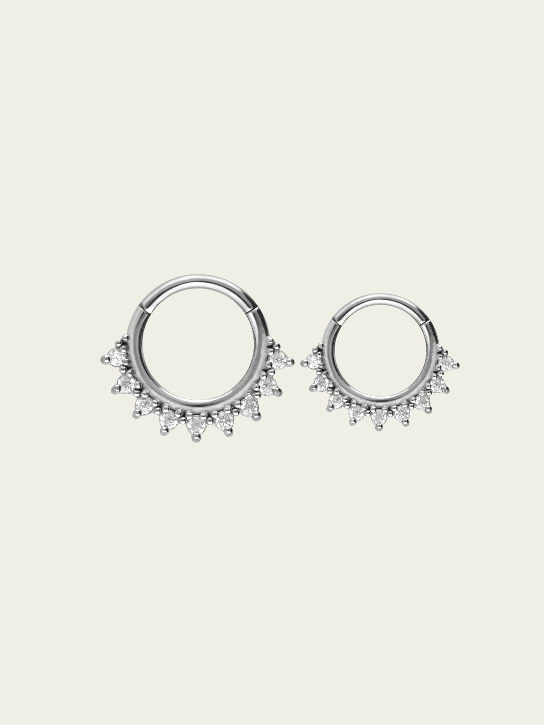 Tipo de cierre: Segmentada. Este tipo de aros tienen una bisagra que al cerrar quedan como argollitas sin fin. Es uno de los cierres más cómodos y seguros de llevar!